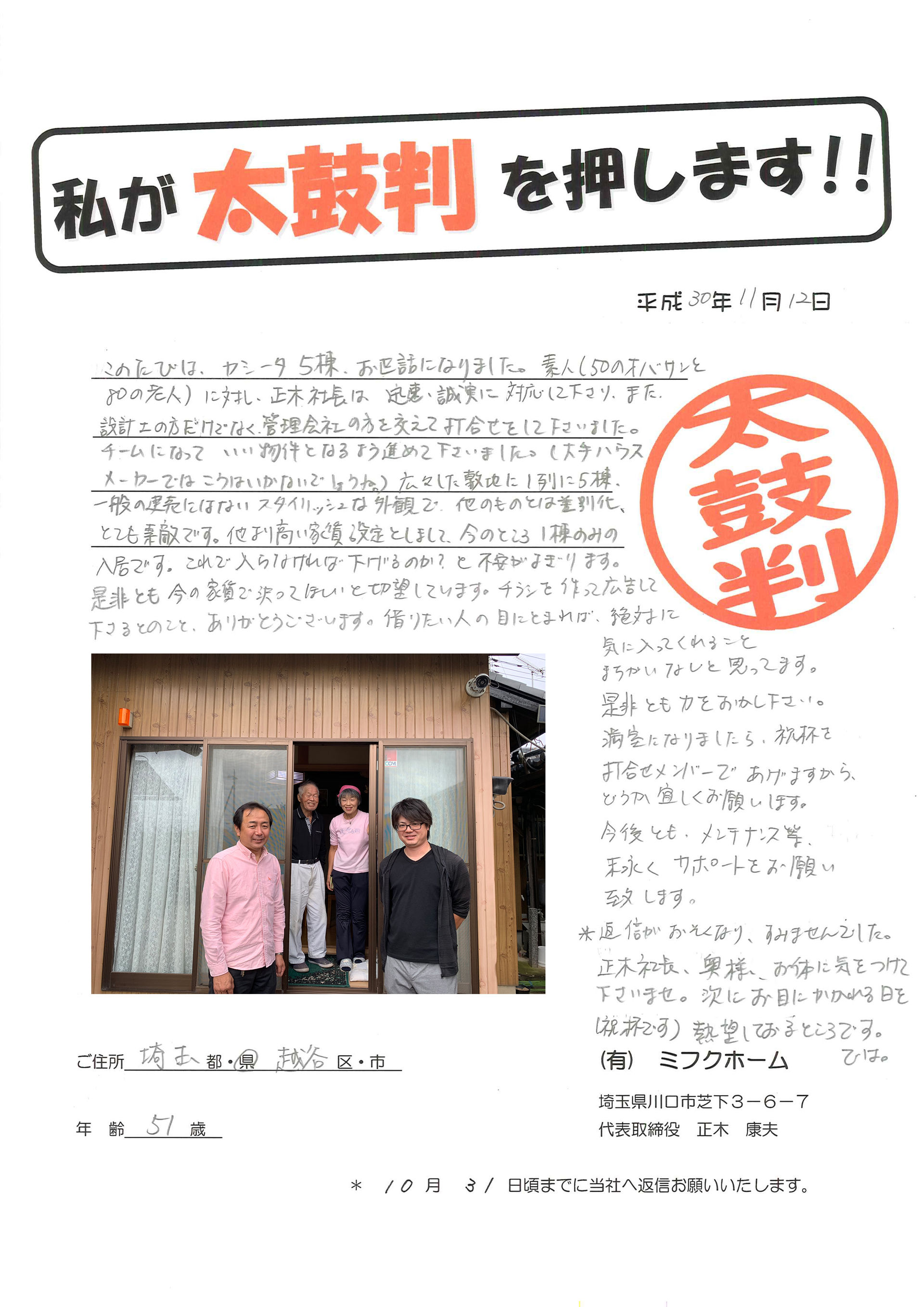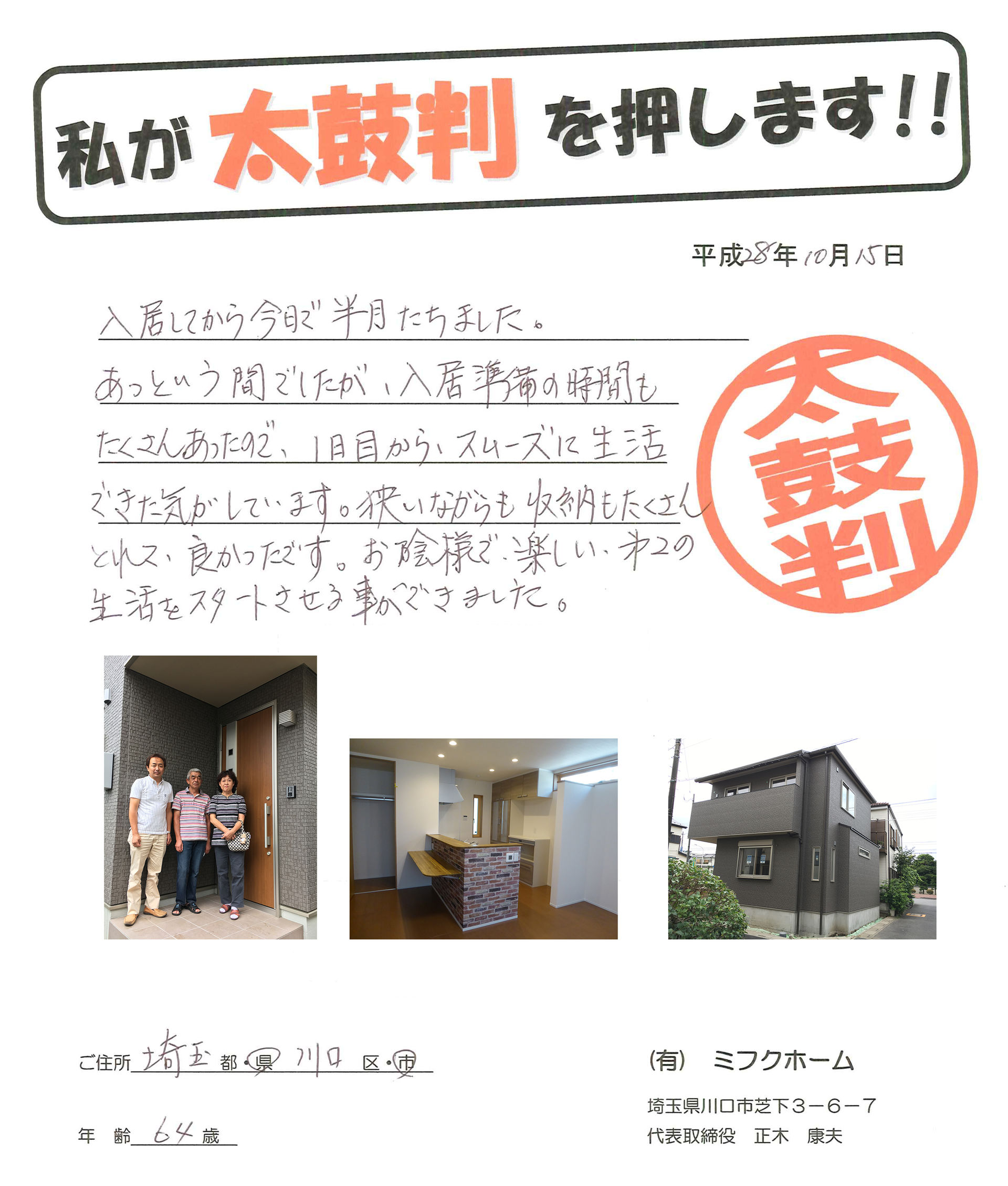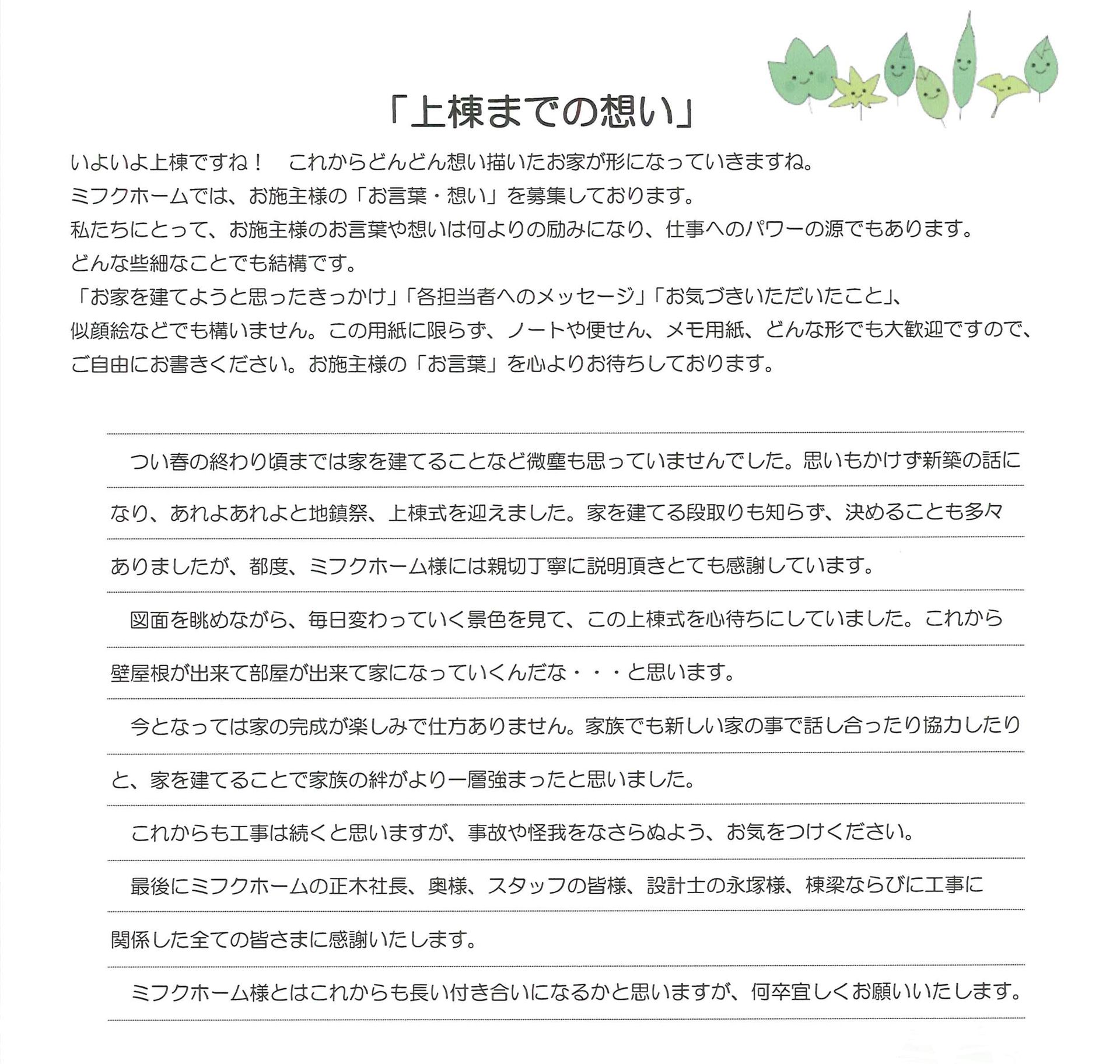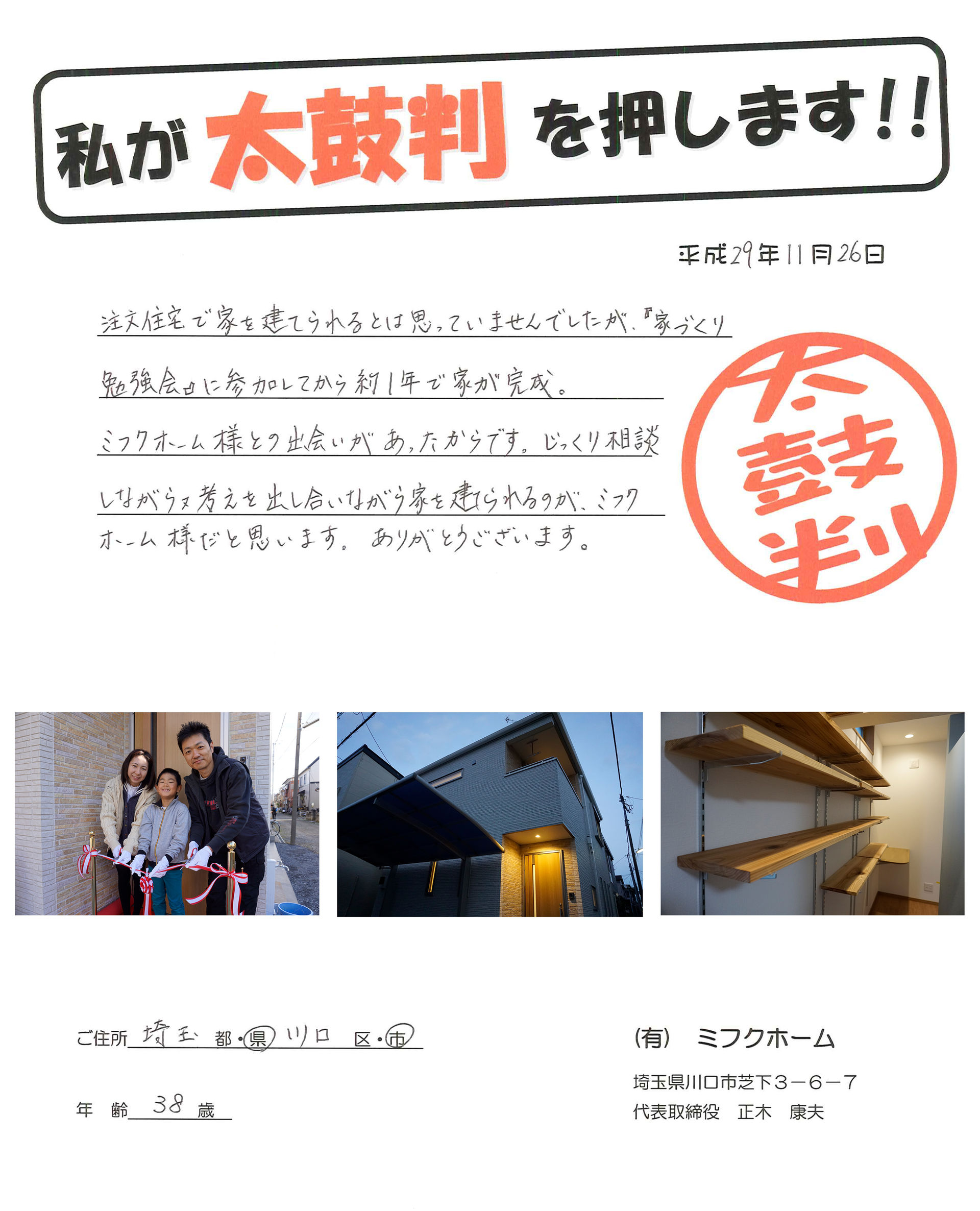 川口市で理想を実現する注文住宅を建てたいとお考えでしたら、住宅の設計や建築に関して豊富なノウハウや実績を有するハウスメーカーまでお気軽にご相談ください。初めてマイホームの建築をご検討中の方に対しても、家族が長く安心して住み続けられる家造りのポイントをスタッフ一同が丁寧に解説いたします。実際にお客様にいただいたお喜びの声を掲載しておりますので是非参考にして下さい。